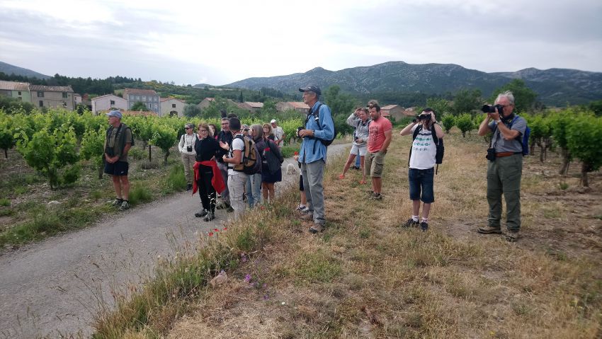 Dans le cadre de NATURA 2000, le PNR (projet) Corbières Fenouillèdes a organisé une sortie découverte des oiseaux des Corbières à Saint Jean de Barrou ce dimanche 9 juin…tout au long d'une belle balade de trois heures, les amoureux des oiseaux et de la nature ont pu identifier et écouter des Serins, des Bruants Zizi, la Pie-Grièche à tête rousse, la Cisticole des joncs, les Hirondelles Rustiques, le Martinet noir , le Guêpier, le Circaète Jean le Blanc… mais surtout nous avons pu assister à un ballet aérien d'un groupe de Vautours Fauves...splendide et exceptionnel !!! merci à Rémi du Parc et à Mathieu de la LPO qui ont tout au long de la balade commenté, expliqué et répondu aux questions sur les oiseaux et sur la flore… une belle matinée découverte qui rappelle que les Corbières sont riches de biodiversité et qu'il faut la préserver............